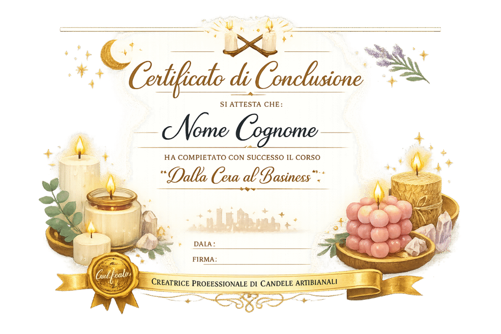 🎨 Con questa guida completa, scoprirai i segreti per avviare la tua attività di candele artigianali da casa — risparmiando tra 250€ e 450€ rispetto ai corsi in presenza tradizionali.